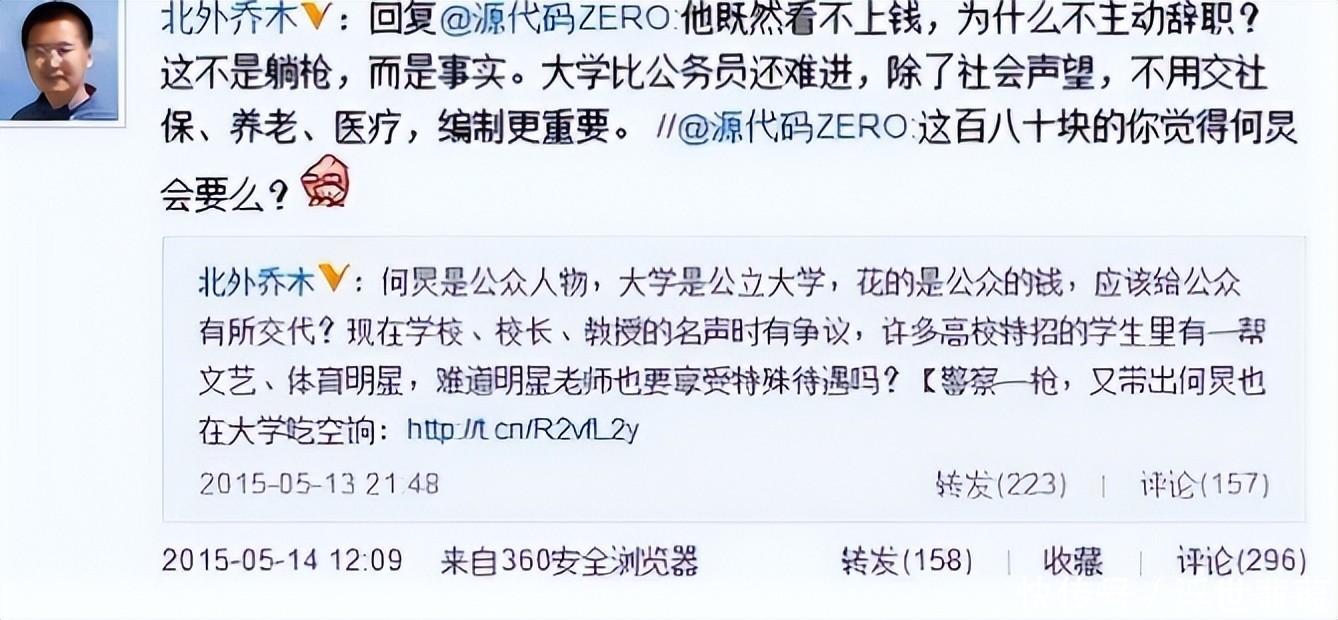 2015年,北京外国语大学副教授乔木实名举报: